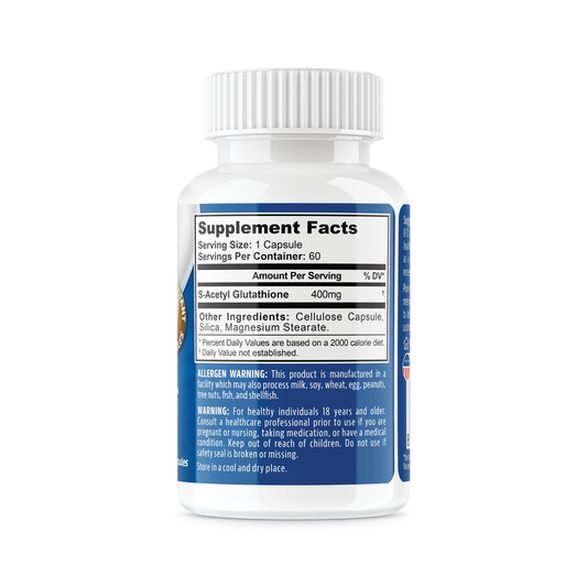 S-Acetyl-Glutathione 400mg Acid Resistant Capsules 60ct (60 400mg Capsules Per Bottle)