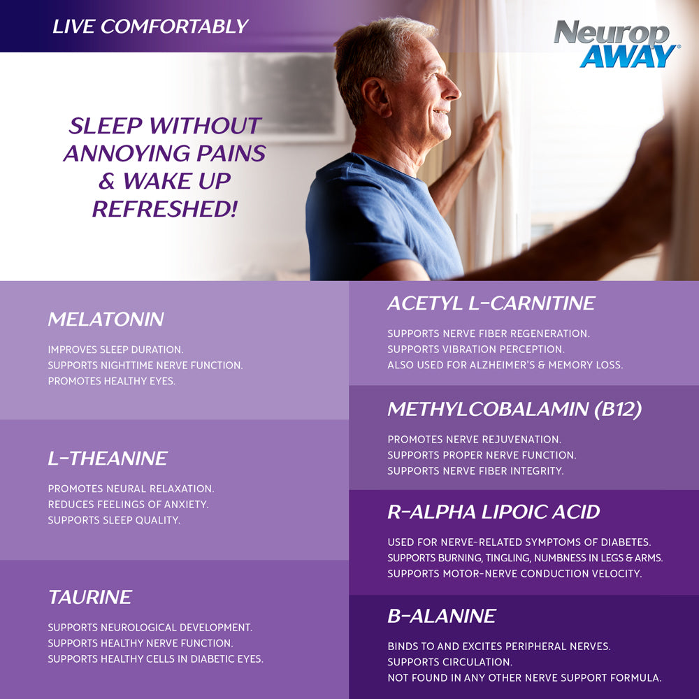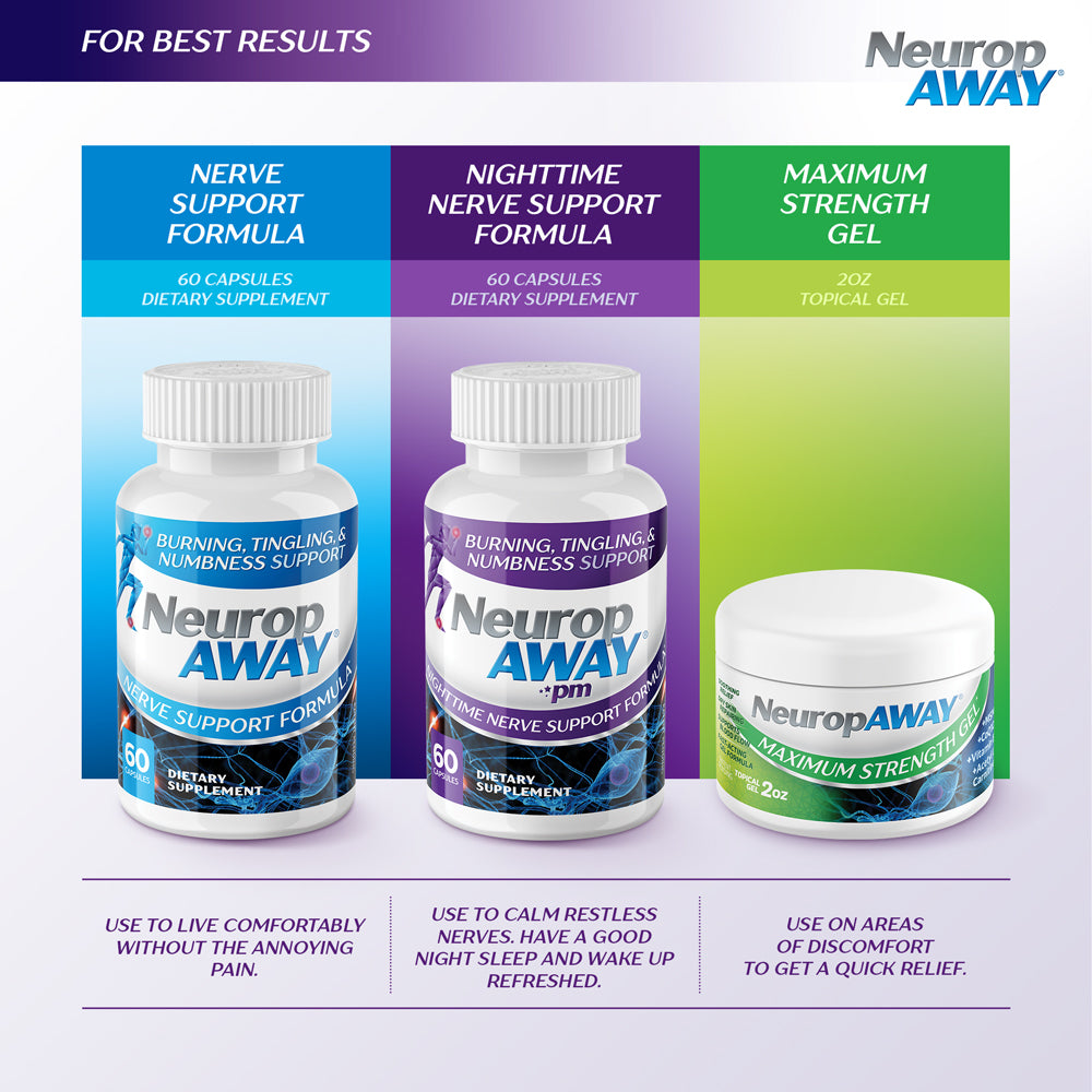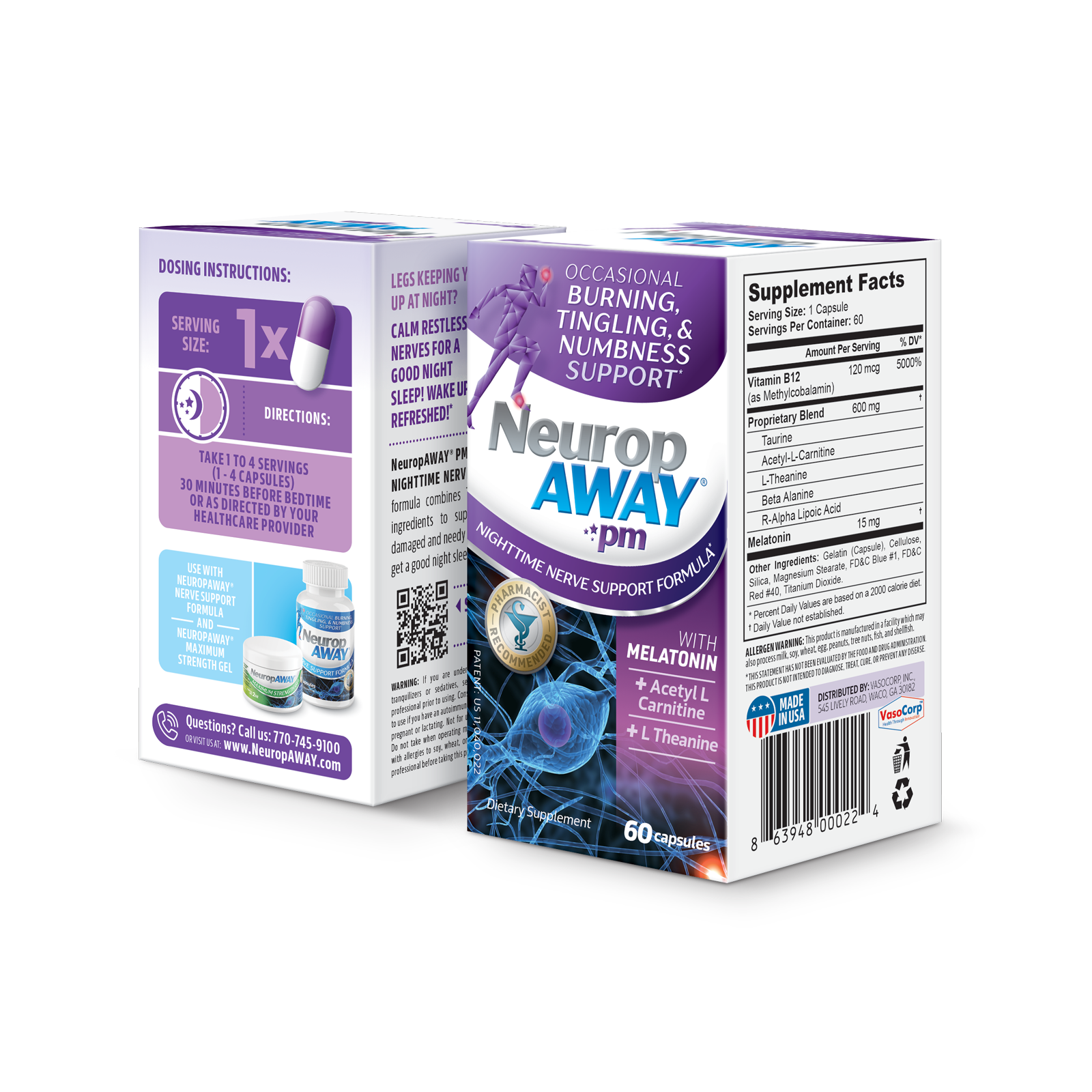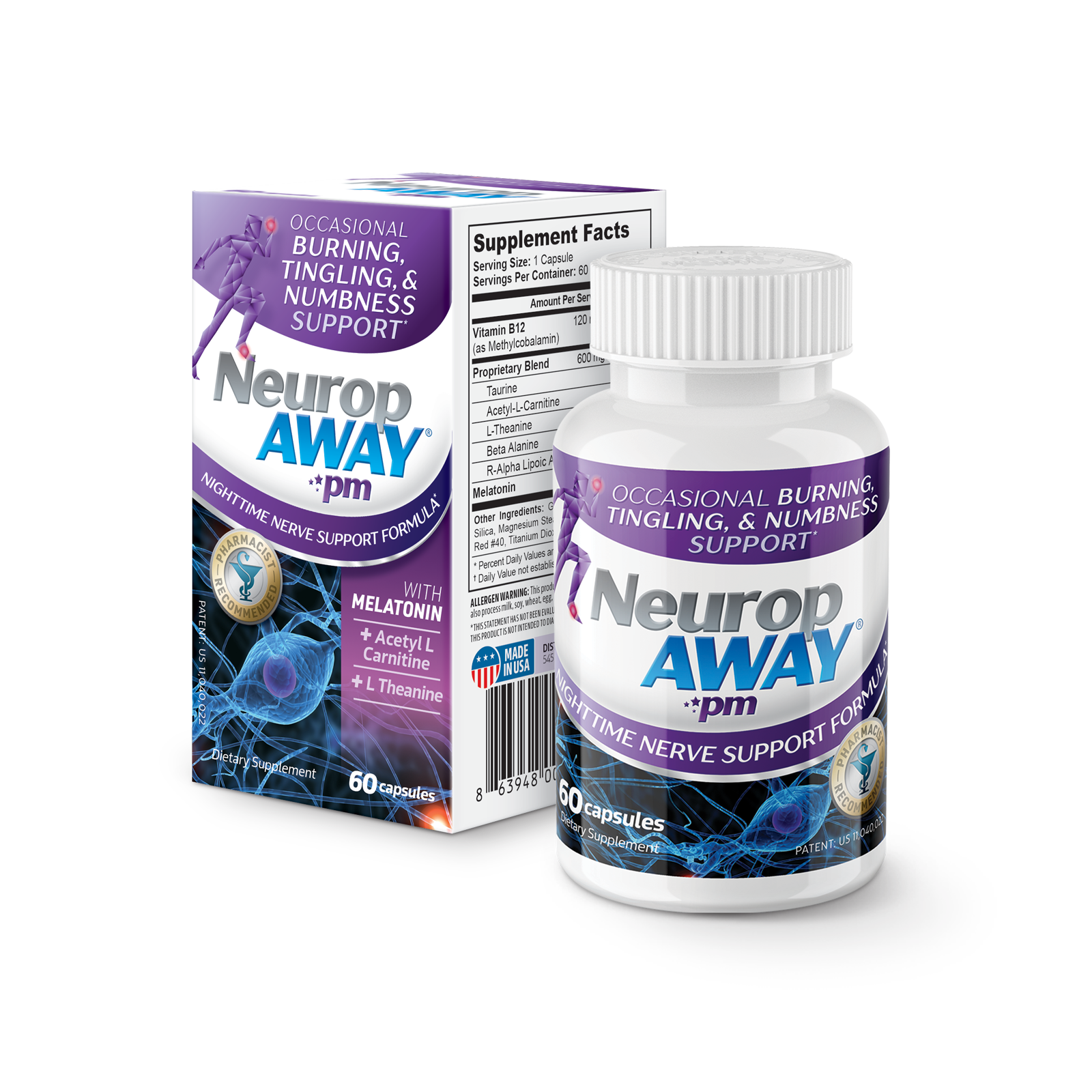 - NeuropAWAY® PM, Nighttime Nerve Support Patented Formula created by nerve care experts with you in mind.